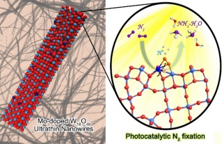 Illustration for the light-driven N2 fixation to ammonia using Mo-doped W18O49 ultrathin nanowires as photocatalyst (Courtesy of XIONG Yujie and Journal of the American Chemical Society)