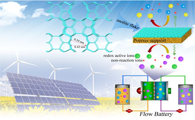 The research team overcame the constraints of traditional ion exchange mechanism and put forward an innovative concept of ion-selective transportation (Energy Environ. Sci. 2011, 4, 1676), they applied zeolite-coated membranes into flow batteries for the first time. Based on these results, they further did lots of work concerning zeolite-coated membranes (Energy & Environmental Science, 2016, 9, 441-447,Energy & Environmental Science 2013, 6, 776; Energy & Environmental Science 2012,5, 6299; Energy & Environmental Science 2011,4, 1147; Adv. Funct. Mater., 2015, 25, 2583; Adv. Funct. Mater. 2016,26,210-218).
