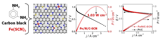 Prof. Shi-Gang Sun group previously prepared a Fe/N/C catalyst with highly active redox properties (J Am Chem Soc, 2014, 136, 10882−10885). In this new paper, they further revealed that iron salts can also greatly influence the ORR activity of Fe/N/C, and the use of Fe(SCN)3 instead of FeCl3 can nearly double the ORR activity. The improvement may be correlated with S doping and high surface area. The Pmax of PEMFC using this improved catalyst reached 1.03 Wcm2.