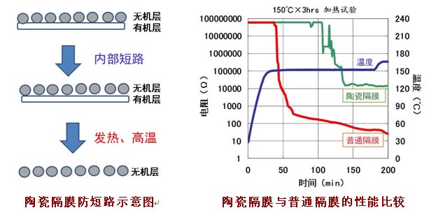 At present, the separator exhibits better performance than the similar products abroad, especially on the aspects of less than 2% of thermal shrinkage for 3μm-thickness Al2O3-coated PE separator in exposure to 150oC for 2 hours. The separator so far shows a great application prospect due to the low cost of below RMB¥10 /m2. The products, once put into operation, hold a promising future on the broad applications in automotive lithium-ion battery, digital products and other areas that will greatly improve the safety of lithium-ion batteries.