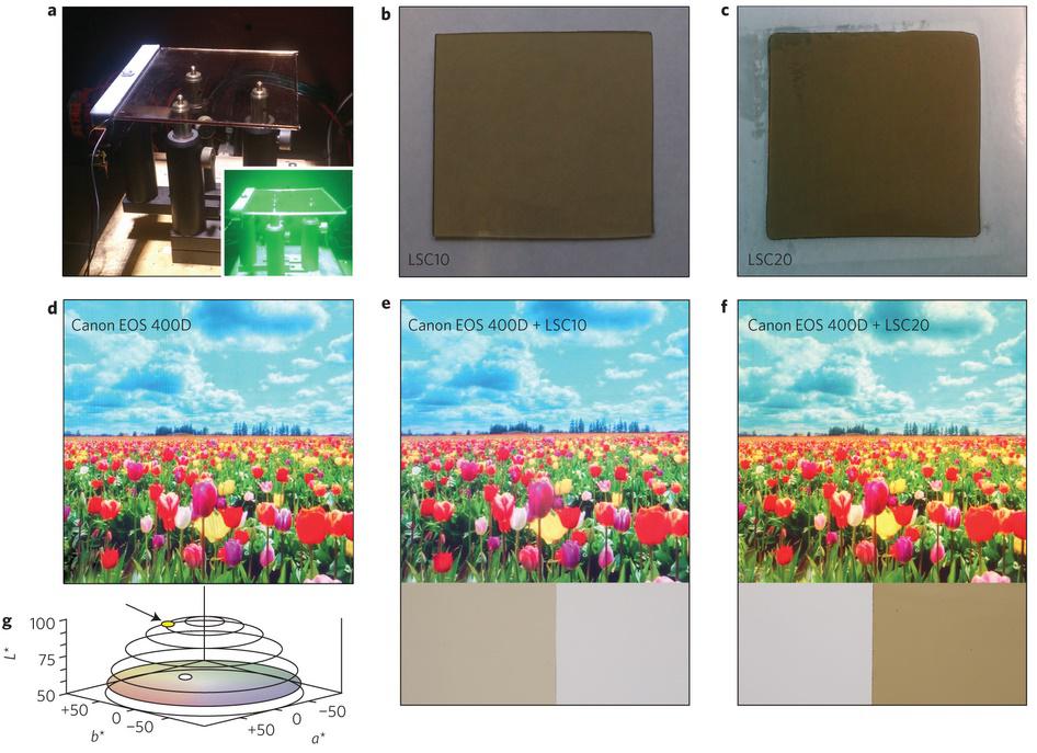 Luminescent solar concentrators serving as semitransparent photovoltaic windows could become an important element in net zero energy consumption buildings of the future. Colloidal quantum dots are promising materials for luminescent solar concentrators as they can be engineered to provide the large Stokes shift necessary for suppressing reabsorption losses in large-area devices. Existing Stokes-shift-engineered quantum dots allow for only partial coverage of the solar spectrum, which limits their light-harvesting ability and leads to colouring of the luminescent solar concentrators, complicating their use in architecture. Here, we use quantum dots of ternary I–III–VI2semiconductors to realize the first large-area quantum dot–luminescent solar concentrators free of toxic elements, with reduced reabsorption and extended coverage of the solar spectrum. By incorporating CuInSexS2-x quantum dots into photo-polymerized poly(lauryl methacrylate), we obtain freestanding, colourless slabs that introduce no distortion to perceived colours and are thus well suited for the realization of photovoltaic windows. Thanks to the suppressed reabsorption and high emission efficiencies of the quantum dots, we achieve an optical power efficiency of 3.2%. Ultrafast spectroscopy studies suggest that the Stokes-shifted emission involves a conduction-band electron and a hole residing in an intragap state associated with a native defect.