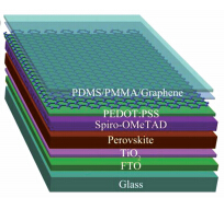 Semitransparent perovskite solar cells are prepared by laminating graphene transparent electrodes on the top for the first time. The device performance is optimized by improving the conductivity of the graphene electrodes and the contact between the graphene and the perovskite active layers during the lamination process. The devices show high power conversion efficiencies when they are illuminated from both sides.