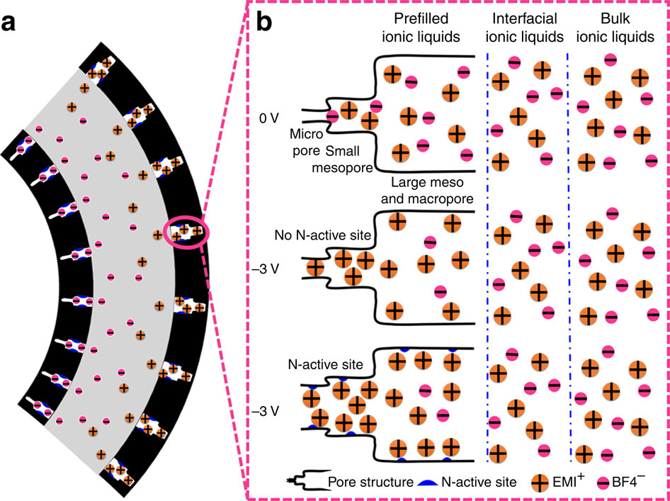 Ionic actuators have attracted attention due to their remarkably large strain under low-voltage stimulation. Because actuation performance is mainly dominated by the electrochemical and electromechanical processes of the electrode layer, the electrode material and structure are crucial. Here, we report a graphitic carbon nitride nanosheet electrode-based ionic actuator that displays high electrochemical activity and electromechanical conversion abilities, including large specific capacitance (259.4 F g−1) with ionic liquid as the electrolyte, fast actuation response (0.5±0.03% in 300 ms), large electromechanical strain (0.93±0.03%) and high actuation stability (100,000 cycles) under 3 V. The key to the high performance lies in the hierarchical pore structure with dominant size <2 nm, optimal pyridinic nitrogen active sites (6.78%) and effective conductivity (382 s m−1) of the electrode. Our study represents an important step towards artificial muscle technology in which heteroatom modulation in electrodes plays an important role in promoting electrochemical actuation performance.