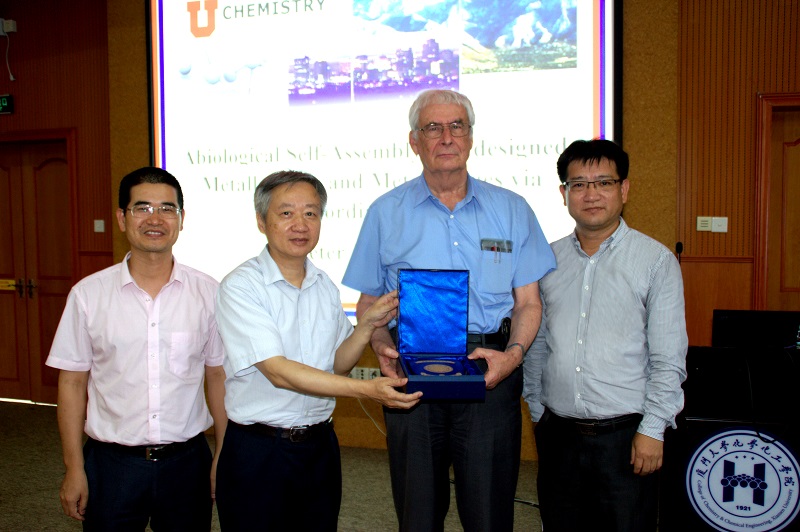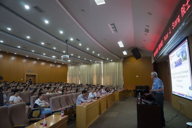 2017年7月23日下午,厦门大学南强学术讲座(第836讲)暨“2011-iChEM讲座”第13讲在厦门大学化学报告厅举行。《美国化学会志》主编、美国犹他大学的Peter J. Stang教授应能源材料化学协同创新中心和厦门大学化学化工学院邀请为厦门大学广大师生带来一场题为《Abiological self-assembly: Formation of metallacylces and metallacages via coordination》的精彩报告。化学化工学院院长江云宝教授主持了本场南强讲座,中科院院士田中群教授向Stang教授颁发了南强讲座纪念牌并合影留念。