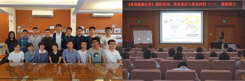 2016年5月17日、18日,iChEM太阳能利用与转化分平台副首席科学家、中国科学技术大学谢毅院士受邀来到厦门,为厦门大学师生讲授了能源化学本科专业《高等能源化学》系列课程之热电效应与热电材料。谢毅院士本次6个课时的课程内容涵盖了化学、物理、材料甚至人生哲学,将基础理论和前沿动态糅合在热情洋溢的课堂上呈现给二百多名师生。