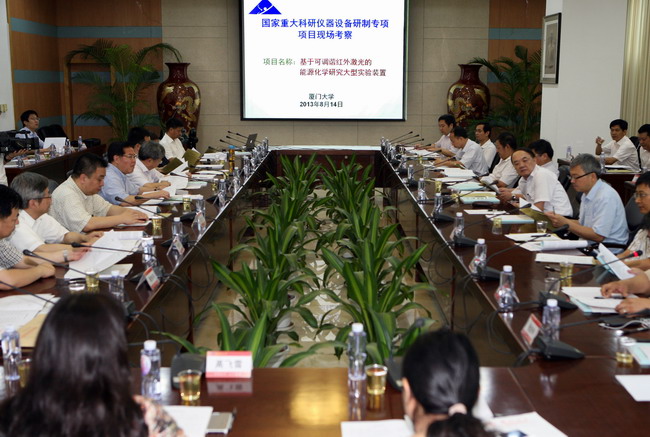 项目负责人孙世刚教授按照国家重大科研仪器设备研制专项现场考察要求,汇报了该项目的研制内容、研究方案及可行性、工作基础及条件,以及经费预算等方面的内容,并回答了专家们提出的问题。