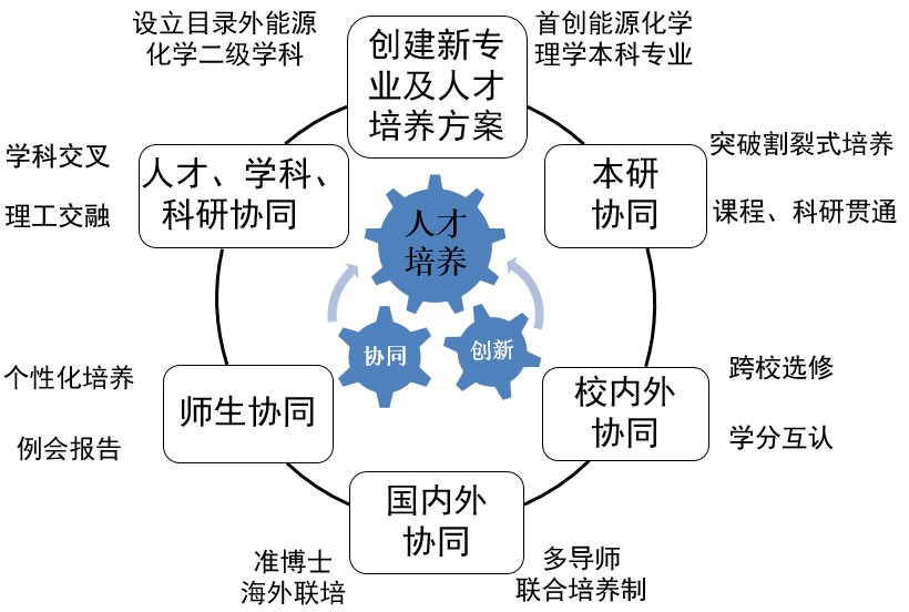 《能源化学研究型人才协同创新培养模式的创建与实践》教学成果以培养能源化学高端研究型人才为目标、以“协同创新”为手段,在国内首创了能源化学二级学科、博士点、本科专业,并建立了系统的人才培养方案;通过建设一流师资队伍、教学质量保障体系、能源化学课程群、优质资源共享机制、多元化过程管理制度等一系列措施,形成了本研协同、多学科协同、校内校外协同、国内国外协同、师生协同等多元化的人才培养模式。经过5年多实践,解决了能源化学本科与研究生教学体系缺失问题,促进了人才、学科、科研三位一体协同发展,在人才培养方面取得了显著效果。
