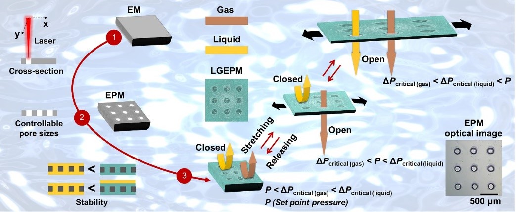 膜科学与技术的多相分离的研究对石油化工、天然气的开采、污水处理、生物医学、湿法除尘、发酵工程等领域具有重要的意义。如何实现在恒压环境下的动态可控多相分离一直以来面临着巨大的技术挑战。近期,iChEM研究人员、厦门大学化学化工学院侯旭教授课题组在这一领域取得突破性进展,其研究成果“Liquid gating elastomeric porous system with dynamically controllable gas/liquid transport”在美国科学促进会出版的"Science Advances"发表。