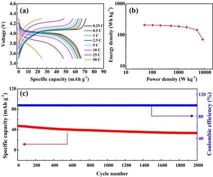 近年来,以锂离子电池为动力的电动汽车正在迅速发展。然而,众所周知,锂离子电池的性能随着温度的降低而迅速下降。这将大大限制电动汽车在冬季或一些高寒地区的应用。前期的研究表明,除了电解液在低温下的低离子电导,基于石墨负极的常规锂离子电池的低温性能还被低温下锂离子进出石墨过程的脱溶剂/溶剂化所限制。针对这一问题,该课题组采用预锂化的硬碳负极取代传统的石墨负极,并和磷酸钒锂 (Li2V2(PO4)3)正极结合构成了一个新的电池体系。