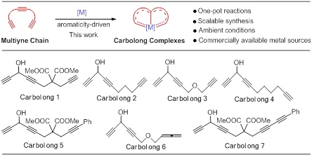 此前,碳龙配合物只能通过金属有机反应的方法获得(即金属杂环衍生化法),该方法路线稍长,不利于碳龙配合物的量产及应用的开发。最近,课题组提出了通过配位化学方法构筑碳龙配合物的新思路——由多齿碳链配体或配体前体直接螯合金属制备碳龙配合物。他们设计、合成了链状多炔(称为碳龙),其可在室温、空气氛下与市售金属配合物OsCl2(PPh3)3、甚至无机盐K2OsCl6反应,一锅法克级制备碳龙配合物,简化了碳龙配合物的合成路线。大大降低了碳龙化学的研究门槛。该方法具有可拓展性,通过碳龙的变化可合成结构多样的碳龙配合物,进一步丰富了碳龙配合物的种类;此外,碳龙配合物金属品种的拓展工作也正在进行中。值得注意的是,作为一类全新的多炔化合物,碳龙不仅可作为碳多齿配体前体,还有望作为合成子广泛应用于有机合成化学。碳龙系列化合物(如Carbolong 1-5)不久将在百灵威(j&k)试剂公司向国内外面市。