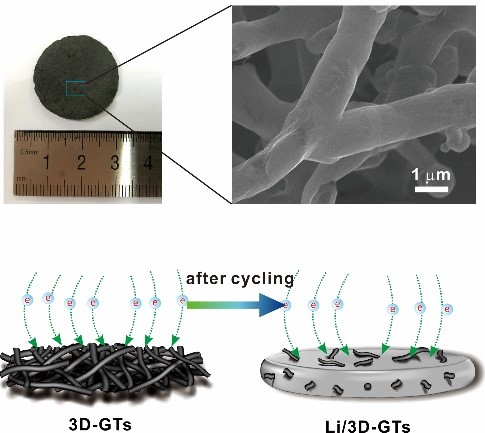 近日,iChEM研究人员、中国科学技术大学季恒星教授课题组提出三维共价连接的sp2杂化石墨微米管作为金属锂负极的集流体,以实现抑制锂枝晶的同时,限制副反应的发生,达到金属锂的高效利用。这种结构的优点在于(i)sp2杂化碳原子形成的骨架结构具有极强的导电能力;(ii)在原子尺度上共价连接的结构单元形成宏观尺寸下的三维块材,极大的消除了微纳结构单元间的界面电阻;(iii)微米级骨架结构具有优化的比表面积,同时限制锂枝晶和SEI的形成。三维共价连接的sp2杂化石墨微米管的金属锂负极可以在循环面容量10 mA h cm-2,金属锂利用率91%的条件下,循环3000小时而没有发生短路。即使在电流密度10 mA cm-2下,金属锂负极仍可实现10 mA h cm-2的面容量。这种三维共价连接的sp2杂化石墨微米管集流体的设计思路对其他类型的金属电池同样具有借鉴意义。相关研究成果以“High Areal Capacity and Lithium Utilization in Anode Made of Covalently-Connected Graphite-Microtubes”为题发表在《先进材料》杂志(Advanced Materials, 2017, Doi:10.1002/adma.201700783)。论文的第一作者是中国科学技术大学化学与材料科学学院博士研究生金松。