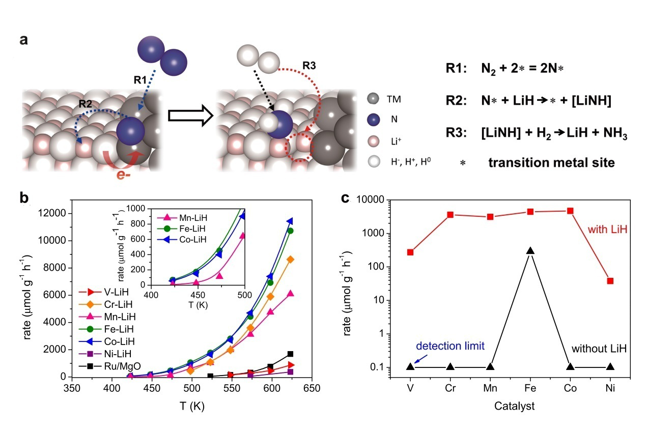 图:TM-LiH双中心复合催化剂上合成氨反应机制以及催化活性