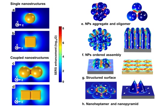 本文通过系统深入分析了PERS应用于材料表面检测的关键科学问题,结合纳米结构在入射光激发下的周边电磁场分布的经典电动力学的大量计算,总结定义了三代PERS热点。第一代为分散在均匀介质中单个纳米颗粒产生的热点,该热点的SERS增强因子往往比较小;第二代为产生于耦合纳米结构的纳米间隙型热点,现有PERS应用主要基于第二代热点。因为一般的材料(如硅片、陶瓷)并不能“塞进”纳米间隙中,因此第二代热点常常不适用于各类材料的分析检测。本文作者在考虑纳米结构和待测材料之间的电磁场耦合作用的基础上,首次提出了具有普适性、适用于各式各样材料的表面光谱分析的第三代热点。该代热点产生于PERS活性纳米结构和待测材料构成的混合结构(hybrid structure),且主要分布在待测材料表面上。