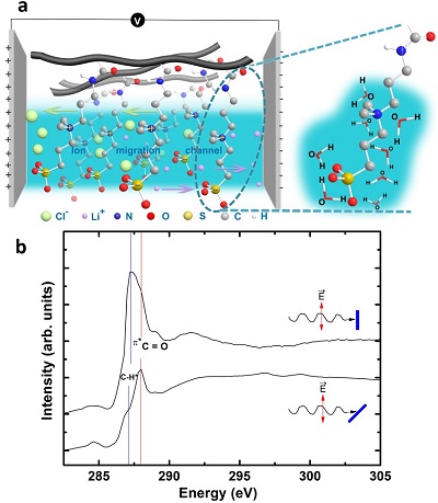 图:两性凝胶电解质在电场下形成离子通道,同时具有良好的保水性能