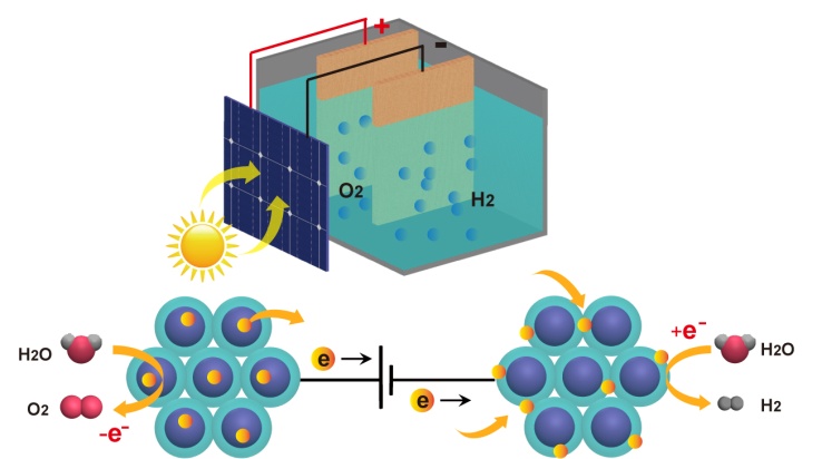 利用电化学方法分解水产氢是可再生能源存储的一种有效方法,进一步通过太阳能捕获和转化,这种电催化水分解的方法可实现对太阳能的直接利用,减少对环境的碳排放。实现这一目的的核心问题在于寻找有效的双功能电催化剂,从而在低的过电势下同时实现产氧与产氢催化,并有效克服缓慢的动力学过程。