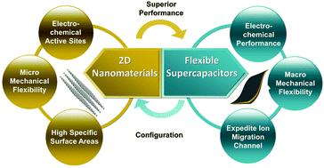 Flexible supercapacitors, as one of most promising emerging energy storage devices, are of great interest owing to their high power density with great mechanical compliance, making them very suitable as power back-ups for future stretchable electronics. Two-dimensional (2D) nanomaterials, including the quasi-2D graphene and inorganic graphene-like materials (IGMs), have been greatly explored to providing huge potential for the development of flexible supercapacitors with higher electrochemical performance. This review article is devoted to recent progresses in engineering 2D nanomaterials for flexible supercapacitors, which survey the evolution of electrode materials, recent developments in 2D nanomaterials and their hybrid nanostructures with regulated electrical properties, and the new planar configurations of flexible supercapacitors. Furthermore, a brief discussion on future directions, challenges and opportunities in this fascinating area is also provided.