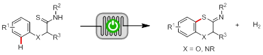 硫杂环结构广泛存在于药物和天然产物分子中,因此发展高效、高选择性的碳–硫键的构筑方法是有机合成化学的重要课题。脱氢偶联是构筑碳–硫键最为直接有效的方法之一。课题组前期从硫代酰胺开始,通过电化学脱氢偶联,成功合成出苯并噻唑类化合物。但是由于硫代酰胺易发生脱硫反应,难以将该脱氢偶联方法拓展至更为挑战性的苯并六元硫杂环化合物的合成。