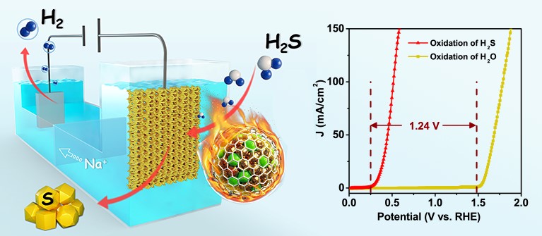 硫化氢是一种在石油化工中广泛存在的有毒气体,但同时也是一种潜在的制氢原料。目前工业上采用克劳斯方法处理硫化氢,但只回收得到硫粉,氢组分以水蒸气的形式被排放,未能得到有效的利用。电催化分解硫化氢是一种温和高效的方法,可以通过阴极析氢、阳极产硫,同时实现氢气和硫粉的分离与回收。然而,目前报道的催化剂中,贵金属价格昂贵,过渡金属及其氧化物易被反应介质毒化或腐蚀而失去活性,极大地限制了这项技术的发展。所以,亟待开发一种价格低廉、活性优异、耐腐蚀的催化材料,用于高效电催化分解硫化氢制氢。