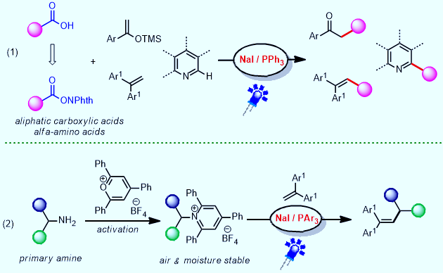 图2.光诱导非金属阴离子复合物催化的脱羧脱胺偶联反应