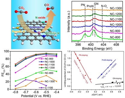 利用可再生能源将CO2转化为高附加值化学品是降低碳排放和缓解化石资源短缺的一种有效策略。CO是一种重要的化工合成原料,因此电催化还原CO2制CO是CO2有效利用的一条重要途径。氮掺杂碳材料具有良好的导电性和易于调变的电子特性,在电催化还原CO2制CO中展现出了优异的催化性能。但目前由于缺少可控掺杂氮物种的制备方法,对氮掺杂碳活性位点的认识仍存在争议。