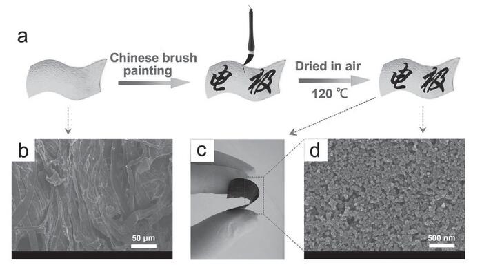 A flexible freestanding air cathode inspired by traditional Chinese calligraphy art is built. When this novel electrode is employed as both a new concept cathode and current collector, to replace conventional rigid and bulky counterparts, a highly flexible and foldable Li-O2 battery with excellent mechanical strength and superior electrochemical performance is obtained.
