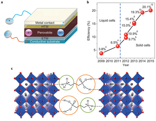The emergence of perovskite solar cells undoubtedly represents one of the big scientific developments of the past few years. The highest certified solar-to-electrical power conversion efficiency of solid-state perovskite solar cells has rapidly risen to over 20% under 1 Sun (100 mW cm-2) illumination. Their high efficiency, together with their easier preparation procedures and lower cost of components, has made perovskite solar cells very competitive over other types of solar cell.