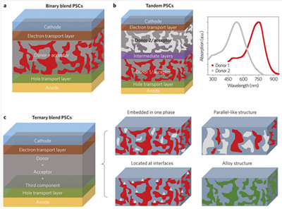 In the past few years, ternary organic solar cells (OSCs) featuring multiple donor or acceptor materials in the active layer have emerged as a promising structure to simultaneously improve all solar cell parameters compared with traditional binary OSCs. Power conversion efficiencies around 10% have been achieved for conjugated polymers in a ternary structure, showing the great potential of ternary systems. In this review, we summarize progress in developing ternary OSCs and discuss many of the designs, chemistries and mechanisms that have been investigated. We conclude by highlighting the challenges and future directions for further development in the field of ternary blend OSCs.