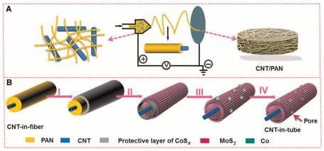 Molybdenum disulfide (MoS2), a typical two-dimensional material, is a promising anode material for lithium-ion batteries because it has three times the theoretical capacity of graphite. The main challenges associated with MoS2 anodes are the structural degradation and the low rate capability caused by the low intrinsic electric conductivity and large strain upon cycling. Here, we design hierarchical MoS2 tubular structures internally wired by carbon nanotubes (CNTs) to tackle these problems. These porous MoS2 tubular structures are constructed from building blocks of ultrathin nanosheets, which are believed to benefit the electrochemical reactions. Benefiting from the unique structural and compositional characteristics, these CNT-wired MoS2 tubular structures deliver a very high specific capacity of ~1320 mAh g-1 at a current density of 0.1 A g-1, exceptional rate capability, and an ultralong cycle life of up to 1000 cycles. This work may inspire new ideas for constructing high-performance electrodes for electrochemical energy storage.